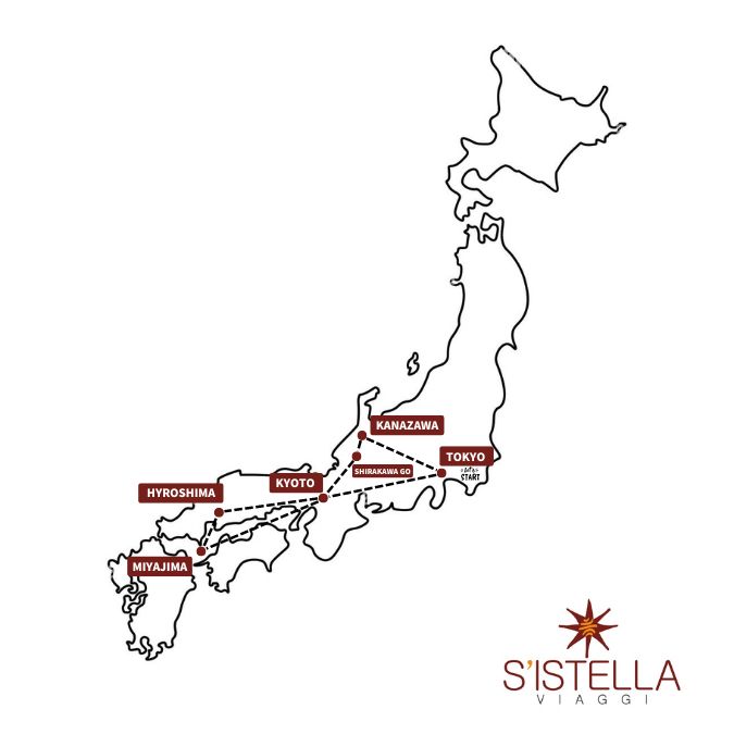 Tokyo, la modernissima capitale che rispecchia la frenesia e l’effervescenza del paese; Kyoto, con i suoi templi e quartieri storici, Hiroshima; rinata dopo la Seconda Guerra Mondiale; Kanazawa un autentico salto indietro nel tempo al periodo feudale giapponese.